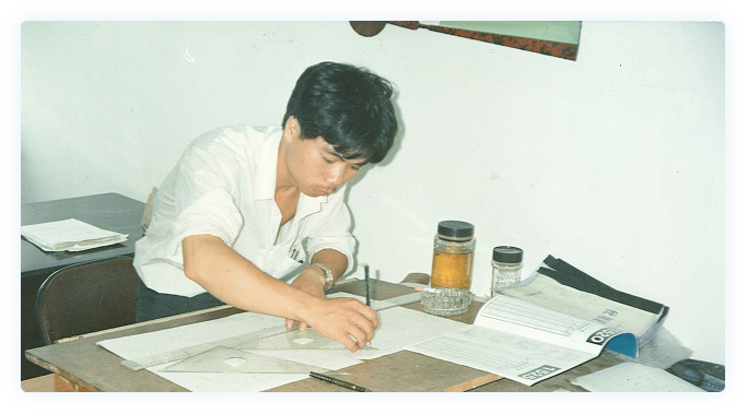 1990年,年轻的李海周怀揣着梦想,只身来到深圳拼搏。期间,有幸遇到了他的第一位模具师傅——来自北京的老工程师江祥丰。